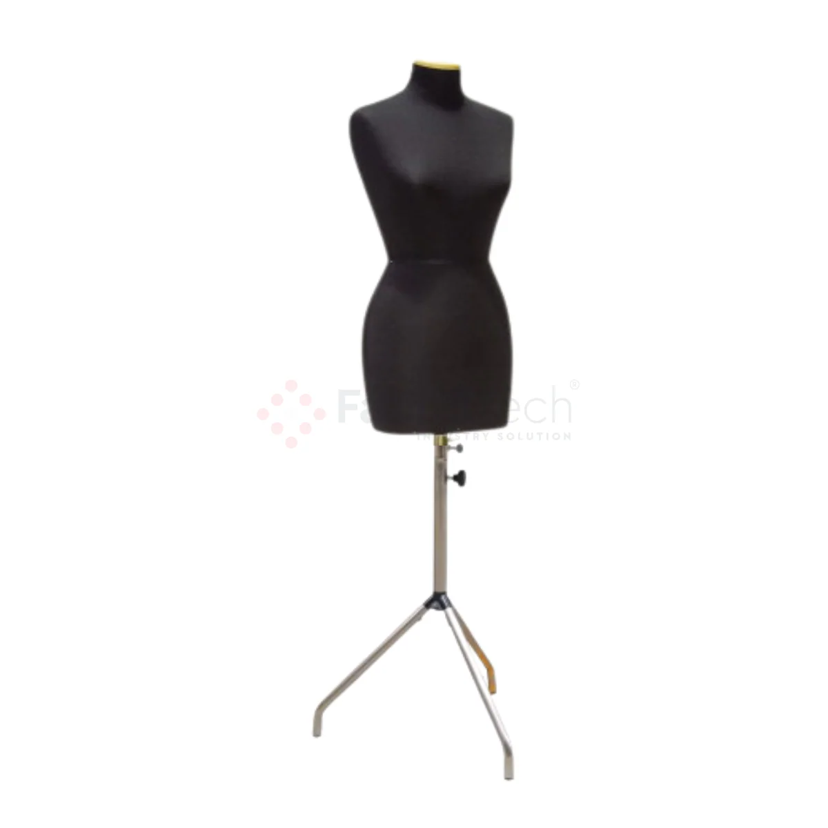 Manichino Sartoriale Donna a Taglia fissa rivestito in poly/lycra, dotato di un piedistallo cromato treppiede.
