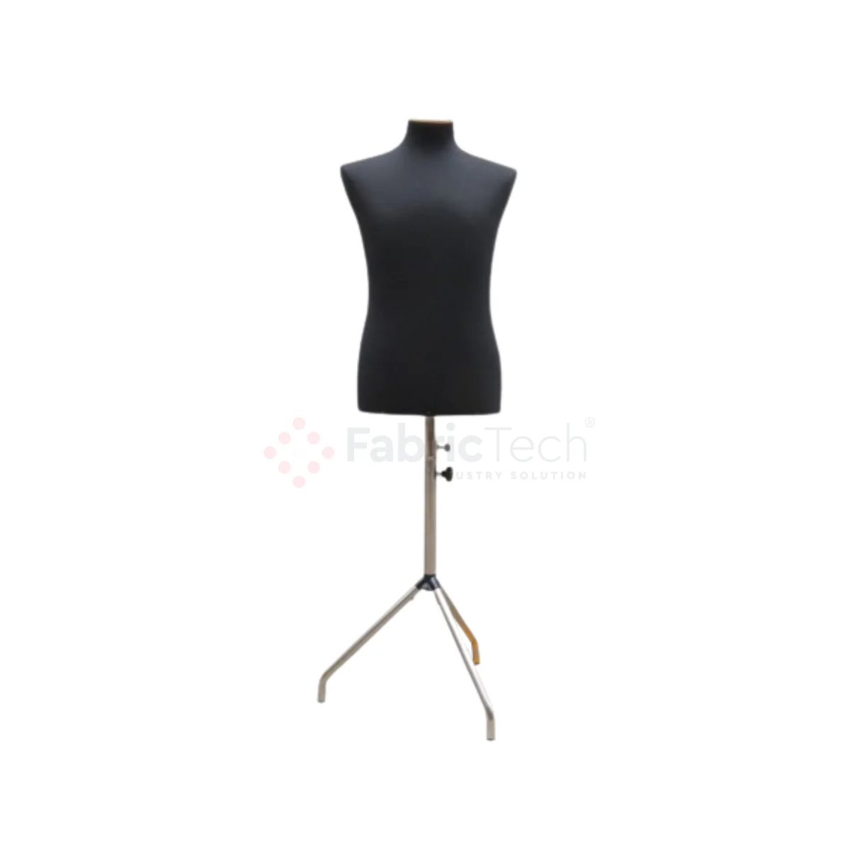 Manichino Sartoriale Uomo a Taglia fissa rivestito in poly/lycra, dotato di un piedistallo cromato treppiede.
